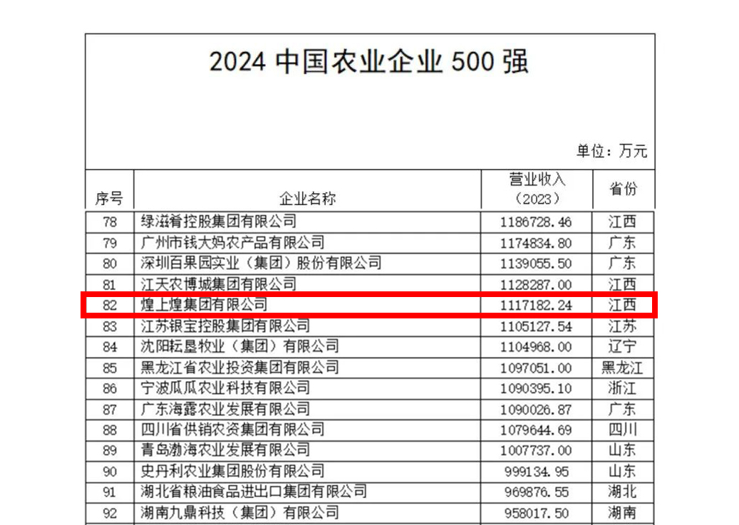 12月11日,農民日報社發布2024中國農業企業500強榜單。榜單聚集發布糧油、畜牧、奶業、水產、食品、流通、農資等領域頭部企業,煌上煌集團...