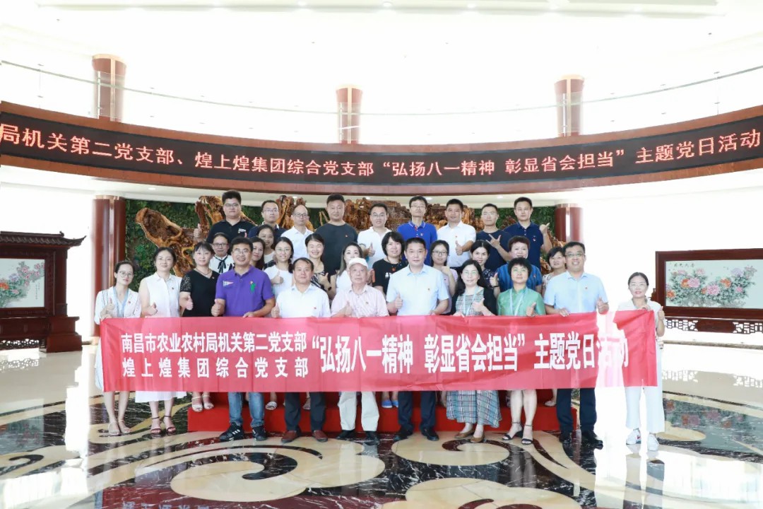 8月14日,南昌市農(nóng)業(yè)農(nóng)村局機(jī)關(guān)第二黨支部與煌上煌集團(tuán)綜合黨支部開展“弘揚(yáng)八一精神、彰顯省會(huì)擔(dān)當(dāng)”主題黨日活動(dòng)。