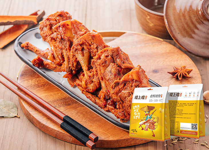 精選規格統一的鴨鎖骨,濃湯鹵制,使用多種調味料、紅油拌制調理,...